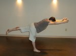The training enthusiast in me also knows this is a great way to get an active stretch of the hamstring. The yogis have been doing this for years. See Tom T from Yogani Studios in Tampa helping me out here. Tom begins with his chest raised, arms overhead, and free leg raised in front of him ( for a great static quad strengthener). He then moves into Virabhadrasana III keeping that same spinal alignment throughout.