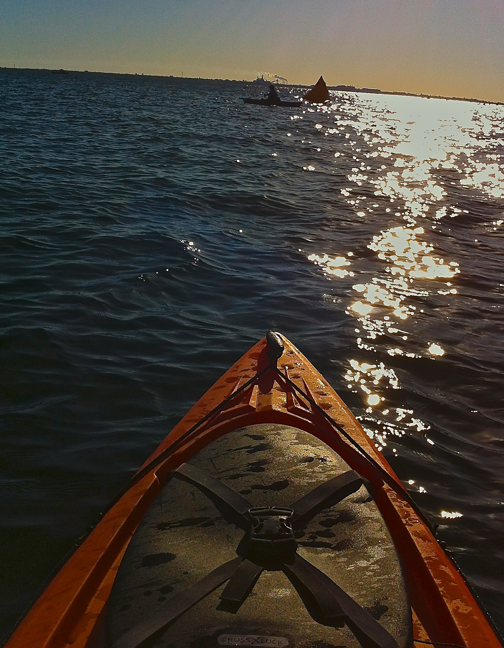 Keep your eye on the prize. Get to the yellow buoy that signals the turn to cross the bay. The crowd from wave six spread out; we were relatively alone with the lapping of waves.